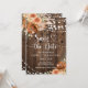 Celebrate your upcoming wedding with this stunning rustic terracotta boho Save the Date card! Featuring rich terracotta, burnt orange, and peach watercolor floral arrangements with pampas grass, delicate string lights, and beautiful heart script on a warm dark wood background. A gorgeous earthy and bohemian design perfect for fall weddings, boho barn ceremonies, outdoor autumn celebrations, and any gathering with a warm and romantic earthy palette!