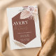 Make a bold yet refined statement with this terracotta geometric boho wedding invitation featuring soft blush roses and delicate dried foliage. A rich earthy hexagon backdrop highlights the couple’s names in elegant typography, creating a modern focal point that feels warm, romantic, and effortlessly stylish.