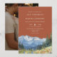 This elegant watercolor mountain wildflower wedding invitation can be personalized with your information in chic typography on a terracotta background and a special photo on the reverse. Designed by Thisisnotme©