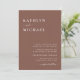 Terracotta Moderno Typography QR Code Todo En Una Tarjeta De Invitación De Boda Minimalista. Celebra tu día especial con esta elegante y hermosa tarjeta de invitación a la boda para embellecer tu ocasión especial. Todos los textos están preorganizados para que puedas personalizarlos fácil y rápidamente con tus propios detalles. Si necesita más personalización o elementos coincidentes, por favor envíe un correo electrónico a alldaybreakfastzazzle@gmail.com - nos encantaría ayudarle.