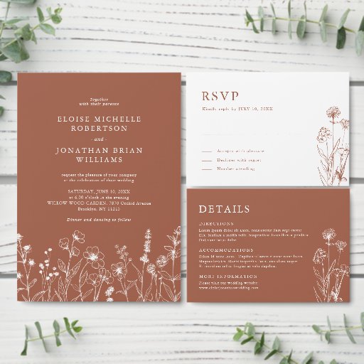 Invitación Terracotta Rustic Floral Fall Wildflower Boda