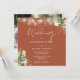 Esta elegante invitación a la boda de terracota, con luces de cuerdas de bonito y vegetación floral, puede ser personalizada con su información en la tipografía de moda con su foto especial al revés. Diseñado por Thisisnotme©
