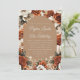 Esta elegante invitación a la boda en forma de arco tiene una paleta cálida y romántica de terracota, óxido, crema y suave taupe. Flores de acuarela exuberantes (rosas, anémonas y una delicada vegetación) enmarcan el exclusivo diseño de la parte superior de las arcadas, lo que le da a la tarjeta un toque sofisticado y acogedor. Un fondo de color suave centra los detalles de su boda en una mezcla de guiones elegantes y tipos de letra serif limpios para un aspecto atemporal. Perfecto para bodas de otoño, celebraciones de moda rústica o eventos de inspiración bohemia. Fácilmente personalizar con sus nombres, fecha y lugar de celebración, y emparejar con el diseño de papel de RSVP y boda para una suite coordinada.