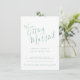 Invitaciones de bodas modernas, sencillas y mullidas, verdes y blancas. Texto de guión verde sobre el frente blanco y una espalda verde lisa. Hay otros elementos bodas y colores disponibles. © Diseño original de www.mylittleedenweddings.com