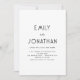 Texto minimalista Código QR Boda blanco negro> Elegancia simple con este diseño tipográfico. Disponible digitalmente e impreso. Añade tu código QR a tu sitio web boda en la parte posterior, lo que hace que sea una opción práctica para todos tus invitados a RSVP y ver todos los detalles sin necesidad de tarjetas de detalles y RSVP separadas. Sencillo y sencillo. Informal, sus nombres son grandes en elegantes minúsculas, con los detalles en la parte inferior. Personaliza fácilmente el texto.