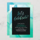 Esta hermosa invitación de aniversario de bodas presenta una tipografía elegante "¡Celebremos!" con un fondo de textura de fluido verde.