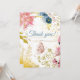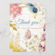 Thank you card with lots of gold and rose colors. Flowers and butterflies surrounded by gold ornaments.