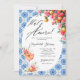 An elegant That’s Amore bridal shower invitation featuring a fresh watercolor citrus floral design framed with a classic blue Italian tile pattern. Inspired by Italian-themed bridal showers, this invitation combines citrus elements with soft Bouganvillea florals and timeless Mediterranean tile details for a romantic and stylish look.