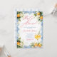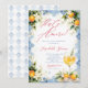 The back of the invitation continues the blue tile and watercolor lemon floral design, creating a cohesive and polished stationery set. Easily personalize with your event details to create a memorable and beautifully styled bridal shower invitation.