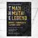 His life has been a great adventure! This fabulous black men's 100th birthday party invitation that says "The Man The Myth The Legend" in a trendy grunge CAP font in white and gold would be perfect for asking people to join you as you celebrate the man in your life's 100th birthday. This invitation is stylish, modern and contemporary with the wheels of time turning in the background. To see your unique invitations select "Personalize this template" and type in your information. It's super easy!