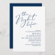 Announce your happily ever after in style with our modern classy navy blue theme design (The Night Before) wedding rehearsal celebration invitation card. It is ideal for couples who have decided to celebrate the night before their big day. With its sophisticated yet playful design, this invitation is sure to set the tone for an unforgettable event. The invitation card features modern romantic script design, adding a touch of timeless elegance to your celebration. Designed by TeeshaDerrick