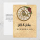 This elegant wedding invitation, Dark Academia style, centers on a vintage clock face, symbolizing timeless love. At its heart sits an ornate golden lock and key, framed by deep crimson roses and lush botanical greenery. Designed to be printed on textured parchment, this piece perfectly balances the scholarly mystery of Dark Academia with the romantic elegance of a Victorian-inspired union.