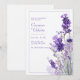 Invite your guests to a celebration of love with the ethereal charm of this hand-painted botanical arrangement. This design features a lush, vertical cascade of deep purple lavender stalks and delicate violet blossoms, rendered in soft watercolor washes. The vibrant petals and slender green stems pop against a crisp white background, which is further enhanced by faint, hazy purple watercolor clouds that add depth and a dreamlike quality. A minimalist thin purple frame defines the central space, ensuring your personalized details remain the focal point of this romantic, high-definition artwork. This botanical design is a premier choice for a romantic garden wedding or a serene summer ceremony set against a natural backdrop. Its soft violet and periwinkle palette makes it a flawless fit for a refined bridal shower, an elegant vineyard engagement, or a whimsical morning brunch reception. This versatile layout harmonizes beautifully with themes like cottagecore, fine-art organic, or classic provincial, and coordinates perfectly with mercury glass accents, dusty lavender linens, and raw silk textures.
