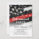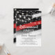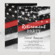 Invitación de fiesta de jubilación de bomberos para celebrar a un bombero que se jubila del servicio. Con una bandera de EE. UU. con la línea roja delgada, luces de cuerda y una plantilla de fiesta moderna.