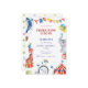 Modern circus carnival birthday invitation for ANY AGE! This invitation showcases cute circus animals, air balloons, sweets, ribbons, festive bunting flags, colorful confetti and much much more.