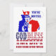 Rojo, blanco y azul patriótico Tío Sam con lema Dios bendiga a América y burbuja de texto personalizable. Agregue fácilmente su propio texto a este diseño para sus invitaciones de fiesta del 4 de julio, independencia, partido político.