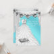 Lindo vestido de fiesta de baile blanco y tiara con rosas, invitaciones Quinceañera azul teñido. Personalice la parte delantera y trasera para su evento. Puede elegir su propio estilo de fuente, color y tamaño de fuente, y su propia redacción.