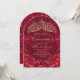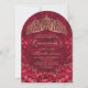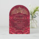 Invitación Tiara Princess Red Gold Elegante Quinceanera
