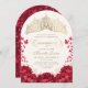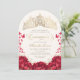 Invitación Tiara Princess Red Gold Elegante Quinceanera