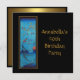 50.ª invitación de cumpleaños, arte asiático vintage. Tiburones azules y flores con adornos de oro. Tiburones Kuniyoshi 1797-1861, Utagawa, Japón. Personalizar para agregar o cambiar detalles.