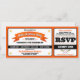 Fun, allstar baseball game ticket style birthday party invitation in your favorite team or school colors of orange and black.
