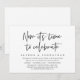 Tarjeta de invitación de boda con tema de escritura moderna (Ahora es tiempo de celebrar). Es perfecta para su cena de boda informal junto al lago, baile y fiesta.