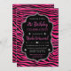 Invitación Tigres de Purpurina rosado y negro en franjas de 2
