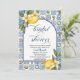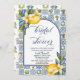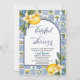 Un elegante diseño Bridal Shower con fondo de azulejos azules y limones.