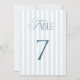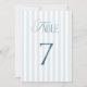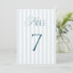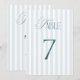 Invitación Timeless Blue Stripes Wedding Table Number 7 Sign
