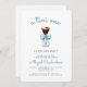 Esta moderna ducha de bebé tiene un ilustracion acuarela de un martini espresso adornado con una proa azul. Arriba, las palabras "a tini one" aparecen en el guión azul casual de escritura a mano. Personalice el texto con el nombre de la futura madre en escritura azul y los detalles en letra sans serif de carbón gris. El reverso proporciona espacio para rifas de pañales, libros para bebés y detalles del registro, además de un cómodo código QR que los huéspedes pueden explorar para visitar el registro. Ideal para la ducha de bebé de un niño.