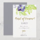 INVITACIÓN TINTA ACUARELA FLORAL AZUL ACUÁTICA DAMA DE HONOR