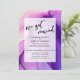 Esta distinción de invitaciones se debe a la fuente moderna de letra manuscrita utilizada para representar la frase "nos casamos" y la vívida imagen de fondo en tonos de púrpura. Esta obra de arte abstracta "líquida" insinúa el humo y la acuarela con líneas tenues que se superponen y desaparecen en nuevas direcciones. Utilice los campos del modelo para agregar sus datos personales y hacer que este diseño moderno y único sea suyo. Este diseño es perfecto para su celebración después de la boda, anuncio de fuga o fiesta de bodas solo de recepción. // 100 //