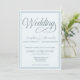 Tipografía Clásica Invitación a la boda formal azul turbulento. Tonos de azul mudo - una invitación formal, clásica y elegante a la Boda con un hermoso guión y caligrafía. El guión "Boda" tiene una sombra oscura para resaltar la elegante palabra del guión. El frente con un marco doble alrededor del texto lo hace formal y afilado en un tono azul mudo claro. La parte posterior de esta invitación está en sólido azul Dusty como el texto y el marco frontales. Junto con sus padres, la pareja invita a una celebración Boda para recordar. Fácil de personalizar para su evento especial. Un diseño clásico que siempre será relevante para la mayoría de los bodas. Si tiene alguna solicitud especial, póngase en contacto con el diseñador.