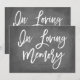 Impreso que dice "En Memoria" sobre un fondo de pizarra falsa.