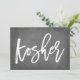Impresión que dice "Kosher" sobre un fondo de pizarra falsa.