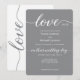 Este elegante diseño utiliza un sofisticado y moderno tipo de letra para la palabra "Amor". El amor nunca falla, del pasaje biblial de Corinthians 13. Personaliza y personalizar con la información de tu boda, por favor contacta conmigo si necesitas ayuda. Encuentra los otros artículos de esta suite Boda y si me falta algo, házmelo saber. Fondo gris de Guay con tipo blanco.