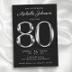Invitación Tipografía de cumpleaños 80 negro y plateado