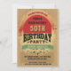 Funky plantilla de invitaciones para fiestas de cumpleaños número 50. La colorida fiesta de cumpleaños personalizada estilo retro estilo retro de hombres o mujeres. personalizado personalizado asequible de 50/50 años / fiesta de 50 años de edad invitaciones a celebraciones con un hermoso, elegante, groovy, de temática retro, con un ilustracion vectorial de estrella ondulada en rojo con adornos caligráficos / caligráficos marrones / caligrafías y adornos floridos y una moderna tipografía retro / diseño de texto y banderas verdes en un bronceado / beige y fondo amarillo grunge. Un diseño moderno y moderno para hombres y mujeres con un tema de estilo vintage. Estas elegantes, elegantes, bonitos, grunge, chic invitaciones están impresas/decoradas en ambos lados. NOTA:- Todas las invitaciones en Zazzle tienen imágenes impresas planas. Si necesitas ayuda para personalizar tu producto, por favor contacta conmigo a través de mi tienda y estaré encantado de ayudarte.