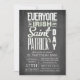 Comience la celebración del Día de San Patente con nuestra moderna y divertida invitación a cenar en St. Patrick's Day Bash. Nuestra elegante y moderna invitación incluye la tipografía "Todo el mundo es irlandés en el Día de San Patricio", impresa en un popular fondo negro de pizarra. Invierta la invitación para encontrar un fondo de pizarra que coincida para un toque especial.