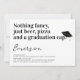 🎉🎓🍕🍺 Invita a amigos y familiares a celebrar una graduación con esta divertida invitación de fiesta con tipografía. El texto dice "Nada elegante, solo cerveza, pizza y una gorra de graduación."