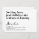 🎉 🎂 Invitar a amigos y familiares a celebrar un cumpleaños con esta divertida invitación a la fiesta de cumpleaños de la tipografía. El texto dice "No hay nada de fantasía solamente torta de cumpleaños y mucho baile".