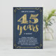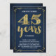 Esta elegante y lujosa invitación para la fiesta del 45 aniversario de boda presenta tipografía vintage, florituras elegantes, caligrafía de pincel, hoja de oro falsa y un fondo azul marino chic.