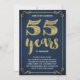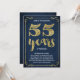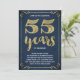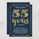 Esta elegante y lujosa invitación para la fiesta del 55 aniversario de bodas cuenta con tipografía vintage, florituras elegantes, caligrafía de pincel, hoja dorada falsa y un fondo azul marino chic.