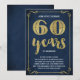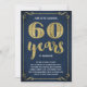 Esta elegante y sofisticada invitación para una fiesta de aniversario de bodas número 60 cuenta con tipografía vintage, florituras elegantes, caligrafía de pincel, hoja de oro falsa y un fondo azul marino chic.