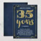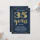 Esta elegante e impresionante invitación para una fiesta de aniversario de bodas número 35 cuenta con tipografía vintage, florituras elegantes, caligrafía de pincel, hoja de oro falsa y un fondo azul marino chic.