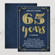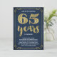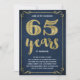 Esta elegante y sofisticada invitación para una fiesta de aniversario de bodas número 65 cuenta con tipografía vintage, florituras elegantes, caligrafía a pincel, hoja de oro falsa y un fondo azul marino chic.