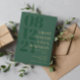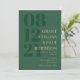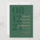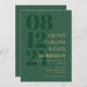 Elegante tipografía invitación a la boda en verde cazador con su boda cita en grandes números por el lado de la invitación. Añadir nombres y frases bodas en un color tostado dorado.