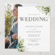 Esta elegante invitación de boda con tipografía de vegetación se puede personalizar con tu foto especial en el reverso. Diseñado por Thisisnotme©