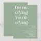 No estoy llorando. Estás llorando. Moderno y gracioso diseño minimalista con tipografía de moda sobre fondo verde sabio. El texto puede ser fácilmente personalizado para un diseño único y de tipo para su día especial.