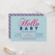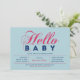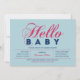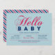 Celebra un día especial para tu ser querido con esta moderna invitación a la ducha de bebé. Este diseño presenta una tipografía simple pero elegante "Hello Baby" con un tema de color rojo y azul marino.